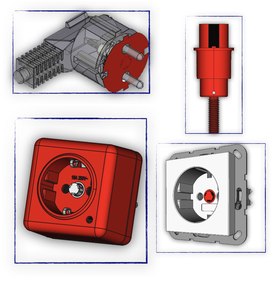 ohne großen Kraftaufwand aus einer SCHUKO Steckdose zu lösen.
